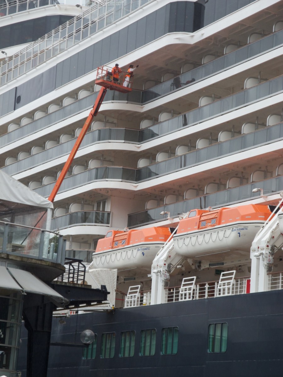 As we walked past this afternoon, passengers were arriving to board the boat so I imagine she will be leaving in the next 24 hours. Hopefully the weather will improve before then because it will certainly be an impressive site to see her pass underneath Sydney Harbour Bridge. In the mean time, maintenance work is going on around the ship.