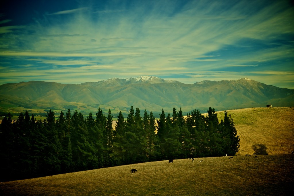 Eventually we turned right and headed towards the Alps. The countryside got prettier as it changed from flat plain to ruling hills and the mountains got higher. We started to climb more seriously and then came through Burke’s Pass and into Mackenzie Country, named after the Scottish shepherd James Mackenzie who first explored the country beyond the pass. The picture above of Mt Edward (1916m) was taken at the start of Mackenzie Country.