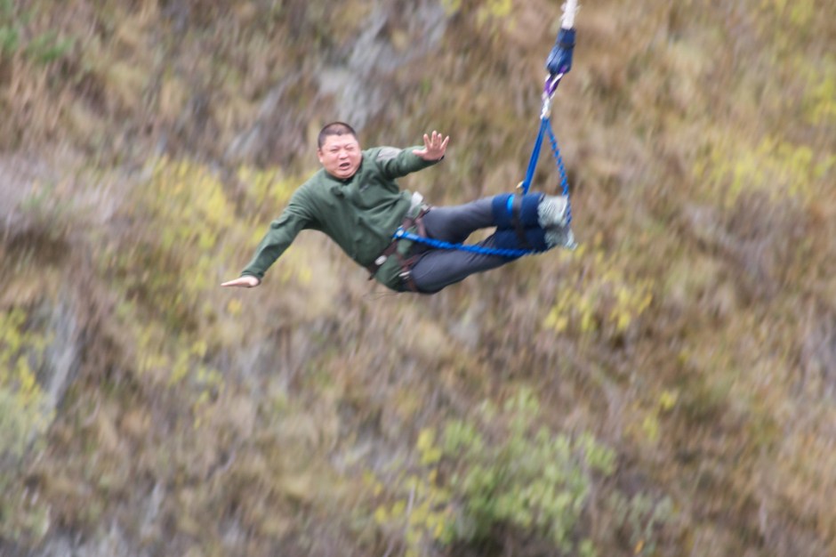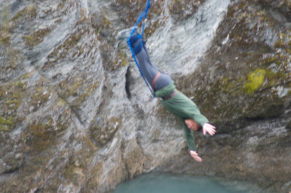 On our way to Queenstown we stopped at the now famous Kawarau Bridge, location of a very popular 43 metre bungee jump. Each to his own I guess. But if you look at the pictures below you might wonder if all the participants are volunteers ….