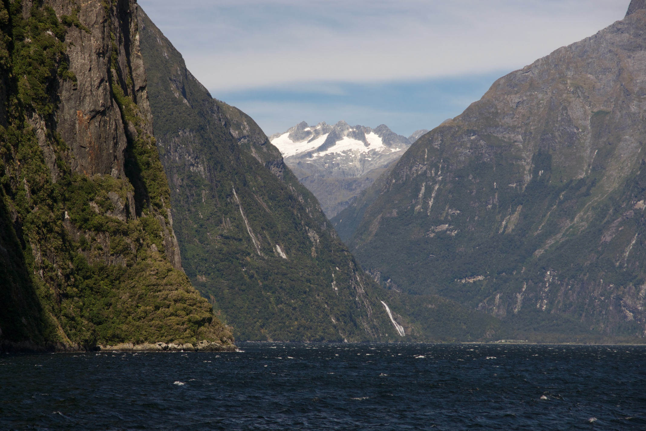 There is probably not much to say about Milford Sound, one of the most famous and most-photographed spots in New Zealand. I would only comment that it is practically impossible for any photograph to really capture the scale of the place. However, to give you one sense of scale, the Sterling Falls which feature in these photographs are 150 metres tall, twice the height of the Niagara Falls.