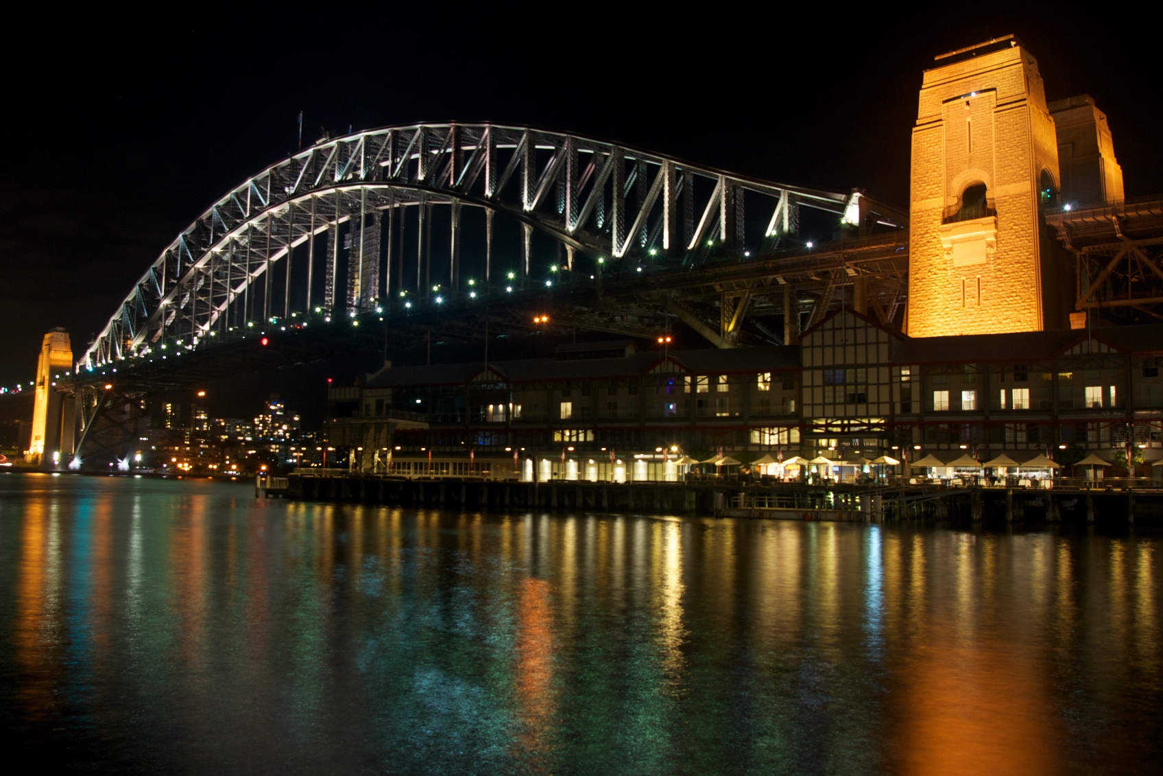 Back in Sydney the weather had improved dramatically since we left at the start of the month. It was warm enough to go out after supper and experiment with some photographs of the bridge. It was quite hard to find an exposure which fully captured there steelwork without flooding the picture with reflected light. I opted in the end to slightly under-exposing the image.