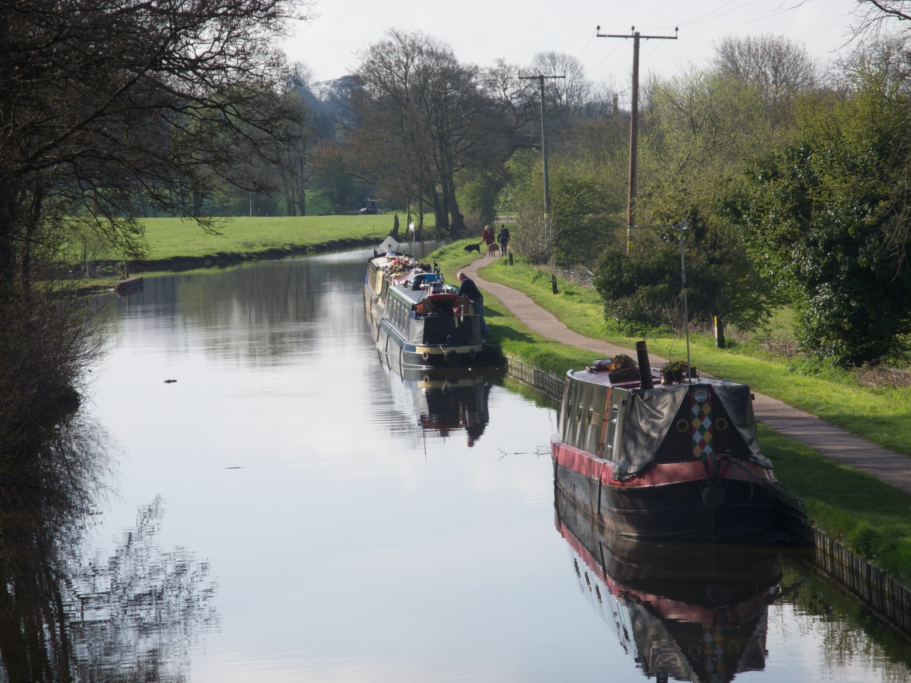 The last time I photographed canalboats was on Regent’s Park Canal, in the centre of London. This time I was crossing the Trent and Mersey Canal in a rather more rural setting. It was a nice April morning with the sun shining and the water still. and I think I would prefer my canal boating rural not urban.
