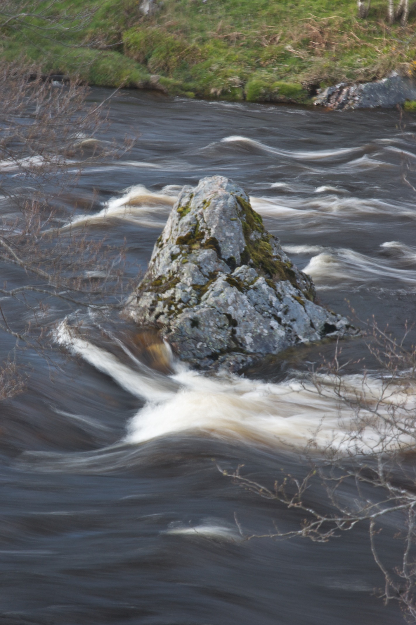 One of the characteristics of these north Highland rivers is that they go up and down very quickly depending on the amount of rain. We saw this last week when one day’s rain caused the river to rise by three feet in a few hours, falling again almost as quickly. The high water made the river largely unfishable, so there was time for a few photographs.