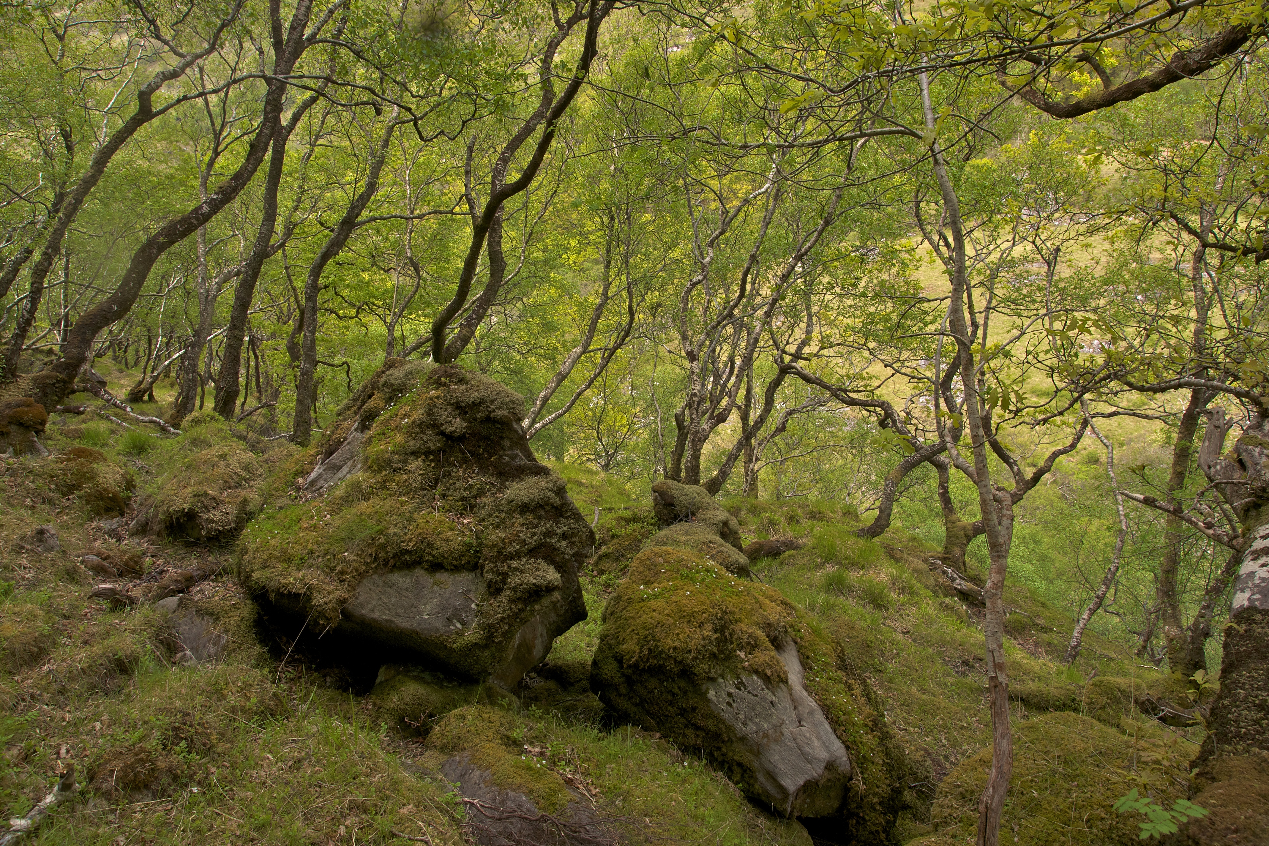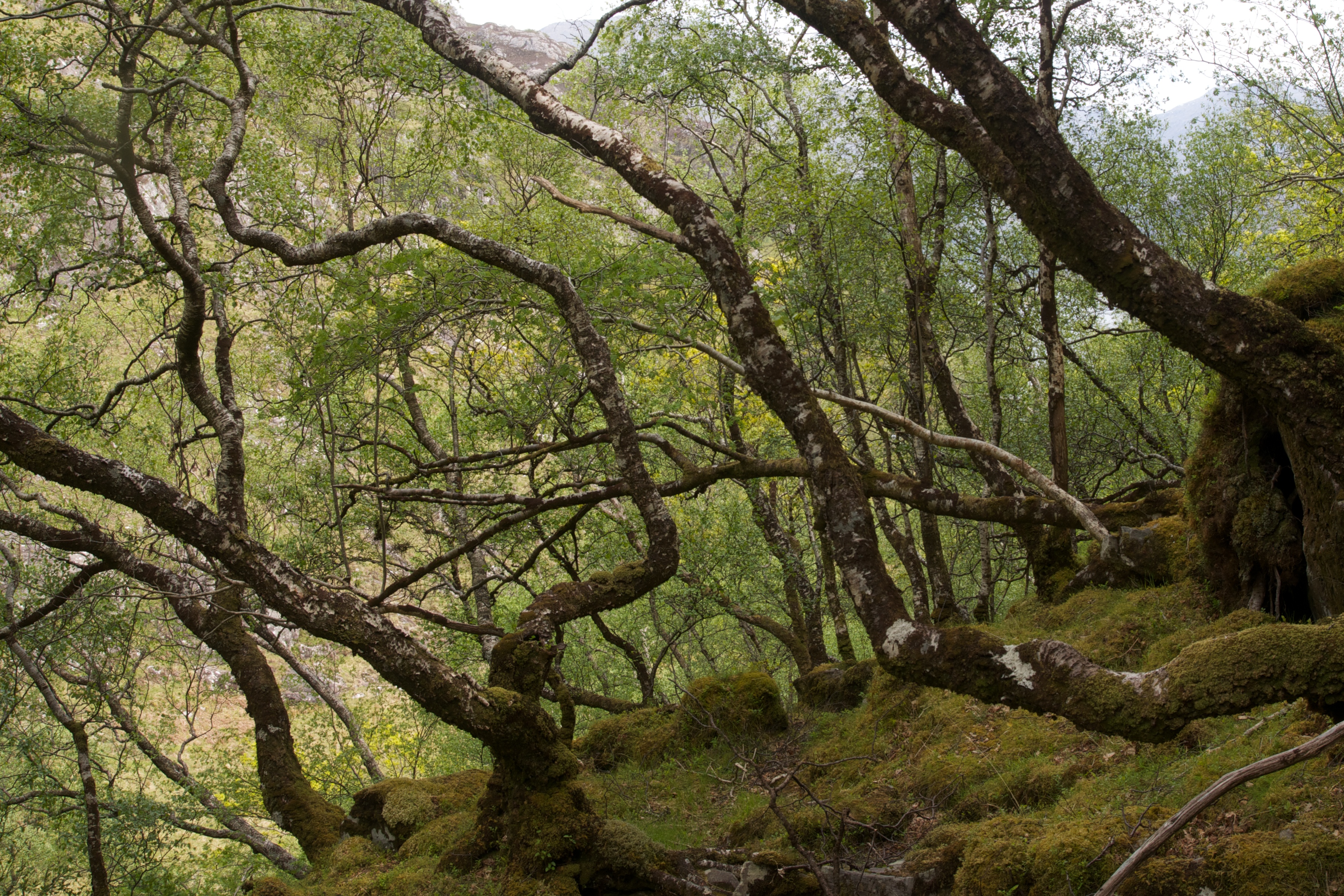 On the other side of Loch Hourne, the woods are oak and birch. If you get into them, you quickly lose any sense of time or place. There is a feeling of primordial forest, frequented by deer but never visited by man. Iy is an almost spiritual feeling.