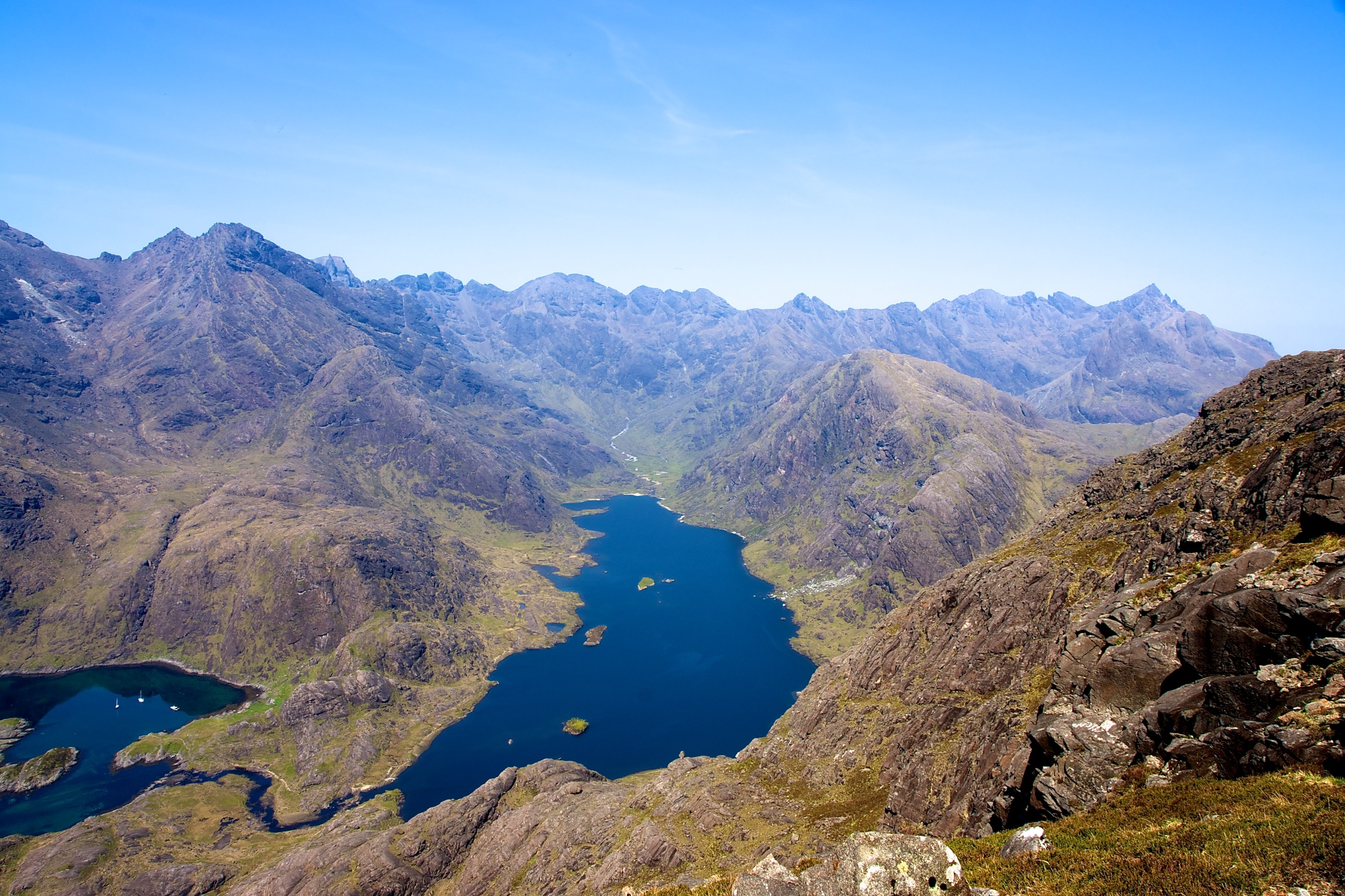 On our final day on the west coast we climbed Sgurr na Stri, about 500 metres on the south coast of Skye, to take some pictures of the Cuillen. Knowing it was going to be hot we started walking at 7.30am, and it was already over 20c. By the time we got back in the early afternoon it was over 30c. It is a nice hill and a lovely climb but it was not a great day for photographs. There was a heat haze everywhere and not a cloud in the sky. The pictures were inevitably a bit flat and fail to do the view its full justice. But a little bit of post-capture work produced the above image, which is serviceable if not stunning.