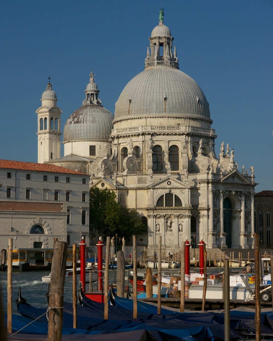 The Salute church (Saint Mary of Good Health) was commissioned to mark the end of a plague in Venice which killed about 30% of the population. The architect, selected by competition, was Baldassare Longhena and the church was a novel design. Although still hugely influenced by Palladio who had built the Redentore church a century earlier to mark the end of a previous plague, Salute was novel in being circular in design. Longhena wrote: