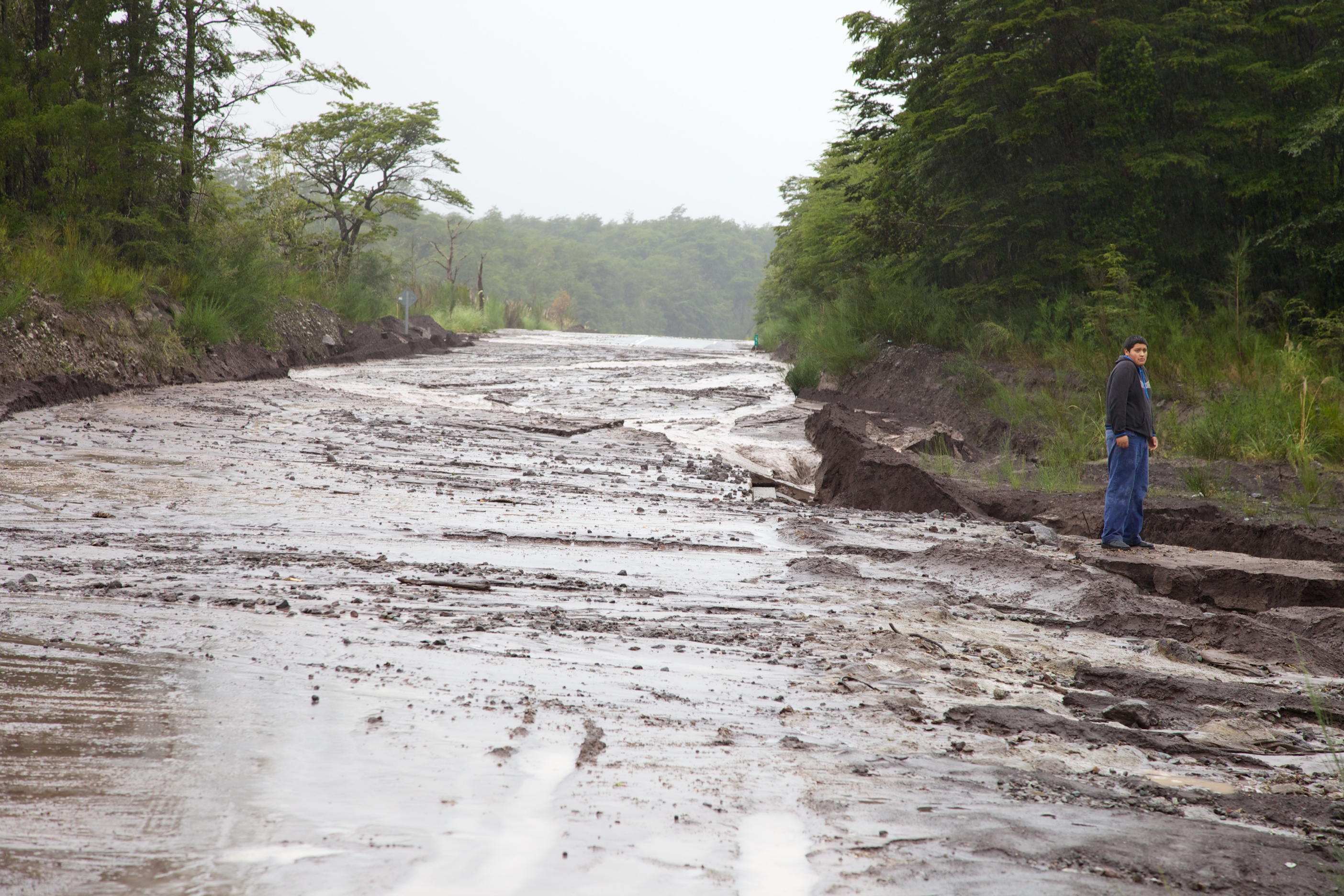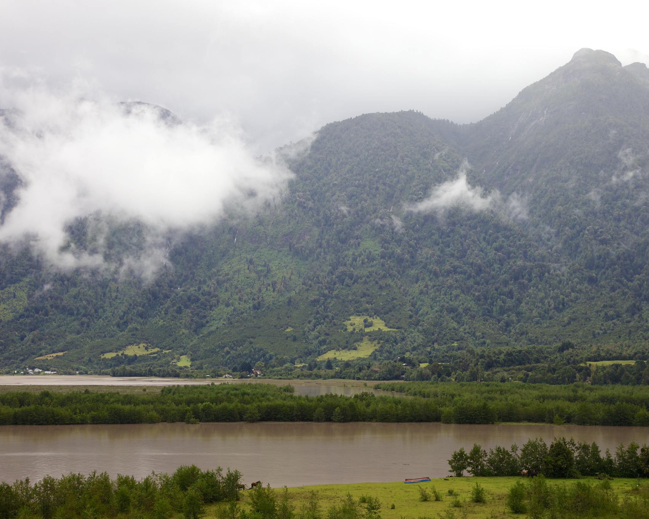 We have though had the chance to drive round the area, more or less. We headed away from the lake this morning and found that it had been raining even harder last night than we had realised. The road to Petrohue was closed as it had been breached by water pouring off the hills.
