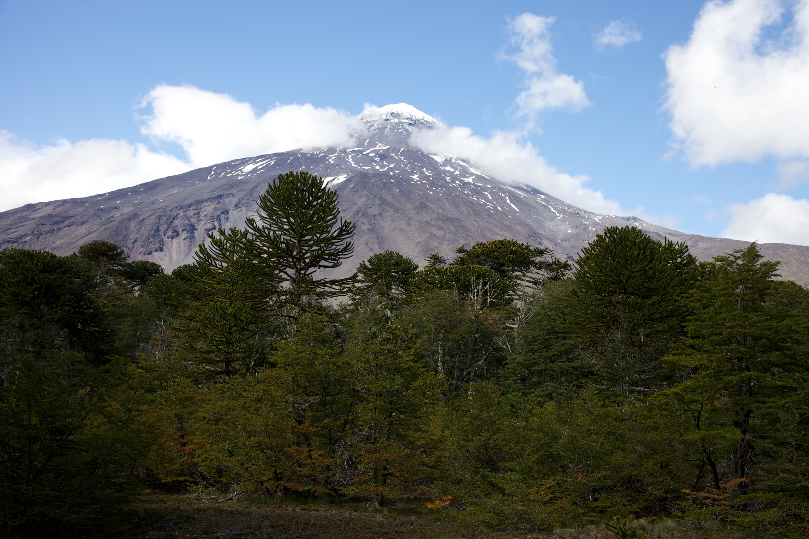Close to Pucon are three large volcanos, Villarica, Quetrupillan and Lanin. Lanin is the biggest and straddles the border between Chile and Argentina. So this morning we headed off, on a beautiful day, to have a closer look at Lanin. Our trip took us to within a few kilometres of the border; indeed you head beyond the last ‘official’ Chilean office in Puesco and seem to be an ‘international road’ between the border posts where you can head off on various trails. Our trail took us off through a Chilean Pine forest and up to some unspoilt Andean lakes with views to Lanin. It was a very special day.