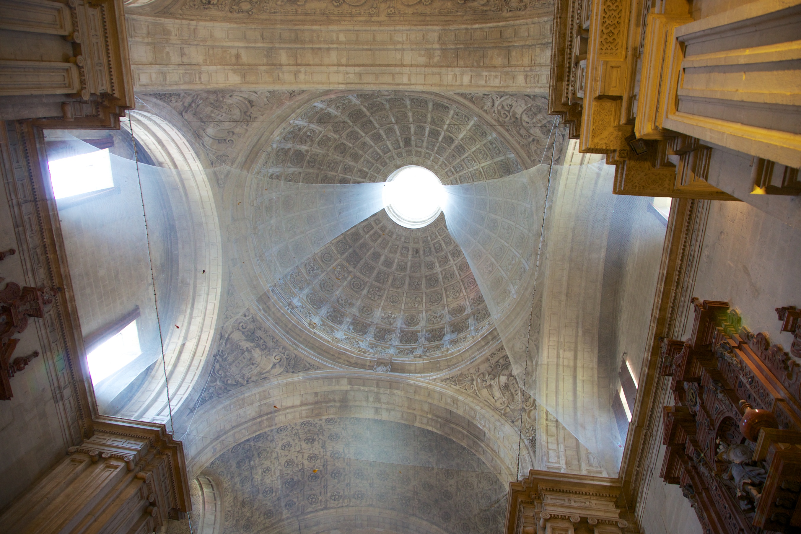 The Iglesia del Sagrario is part of the complex formed by Seville Cathedral but is actually a separate parish church, though built to Cathedral-like proportions. It is rather more austere and less ornate than the interior of the Cathedral and, in my view, rather the better for it. The main dome was hung with sheets, presumably as part of a restoration programme but whilst restoration works usually hide the things you most want to see, the gauze sheets I found added something to the view.