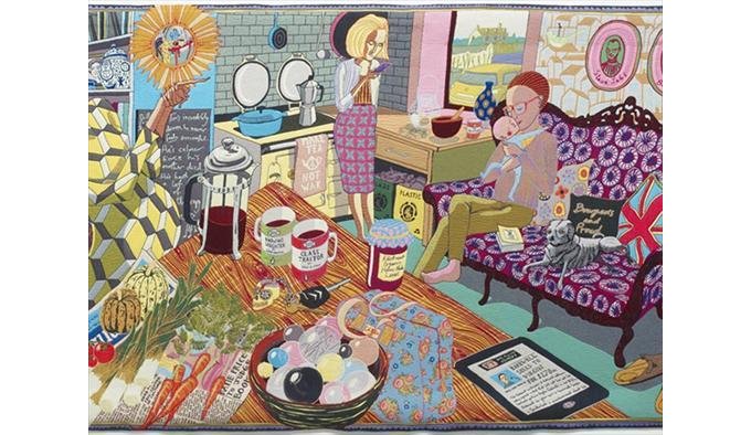 The strongest room by far is the room set aside to display Grayson Perry’s series ‘The Vanity of Small Differences’, a series of epic tapestries based on the Rake’s Progress and documenting the rise and fall of Tom Rakewell, internet entrepreneur. These have of course been exhibited before, and given more space to be enjoyed. But they are magnificent works of imagination and craft and well worth seeing.