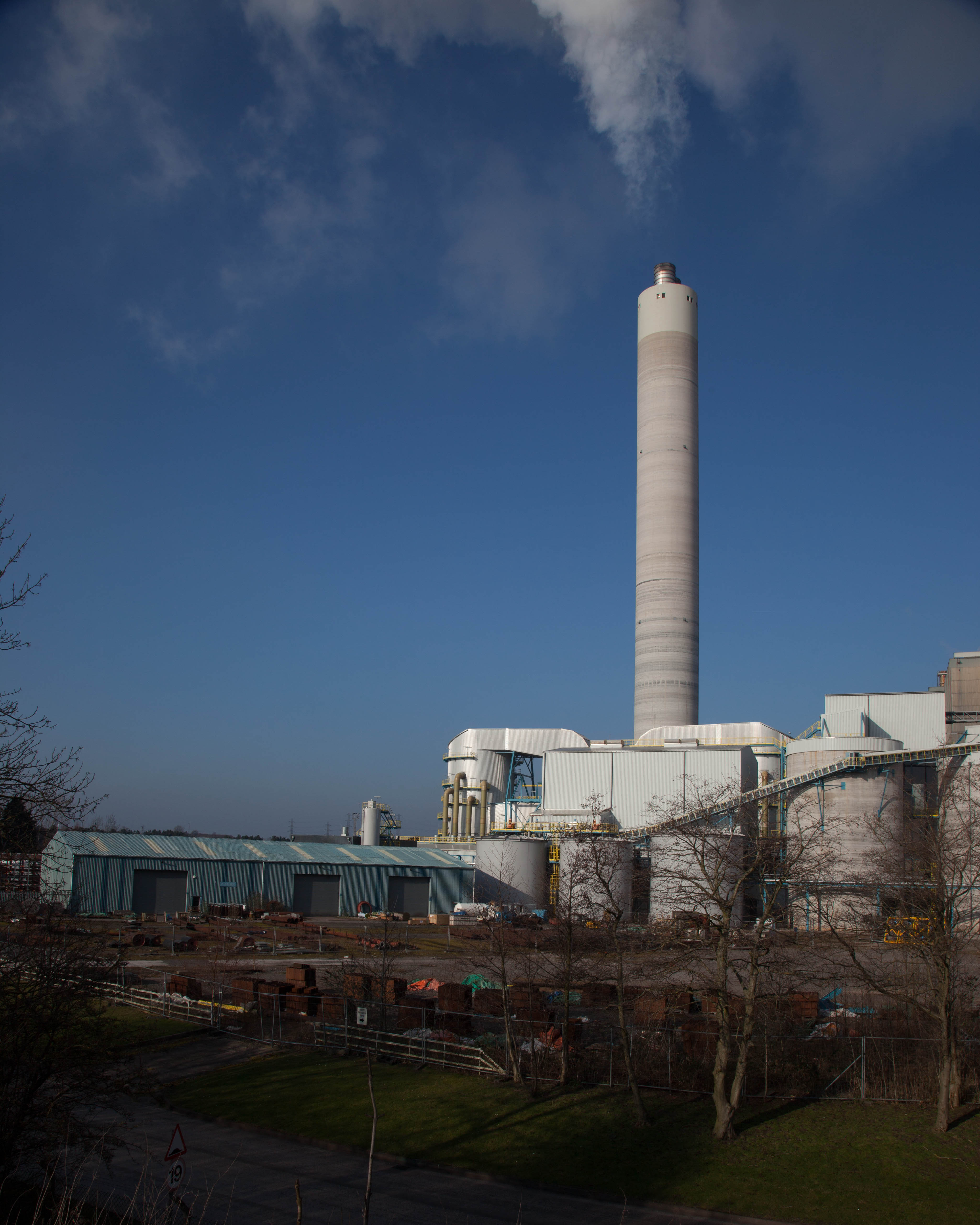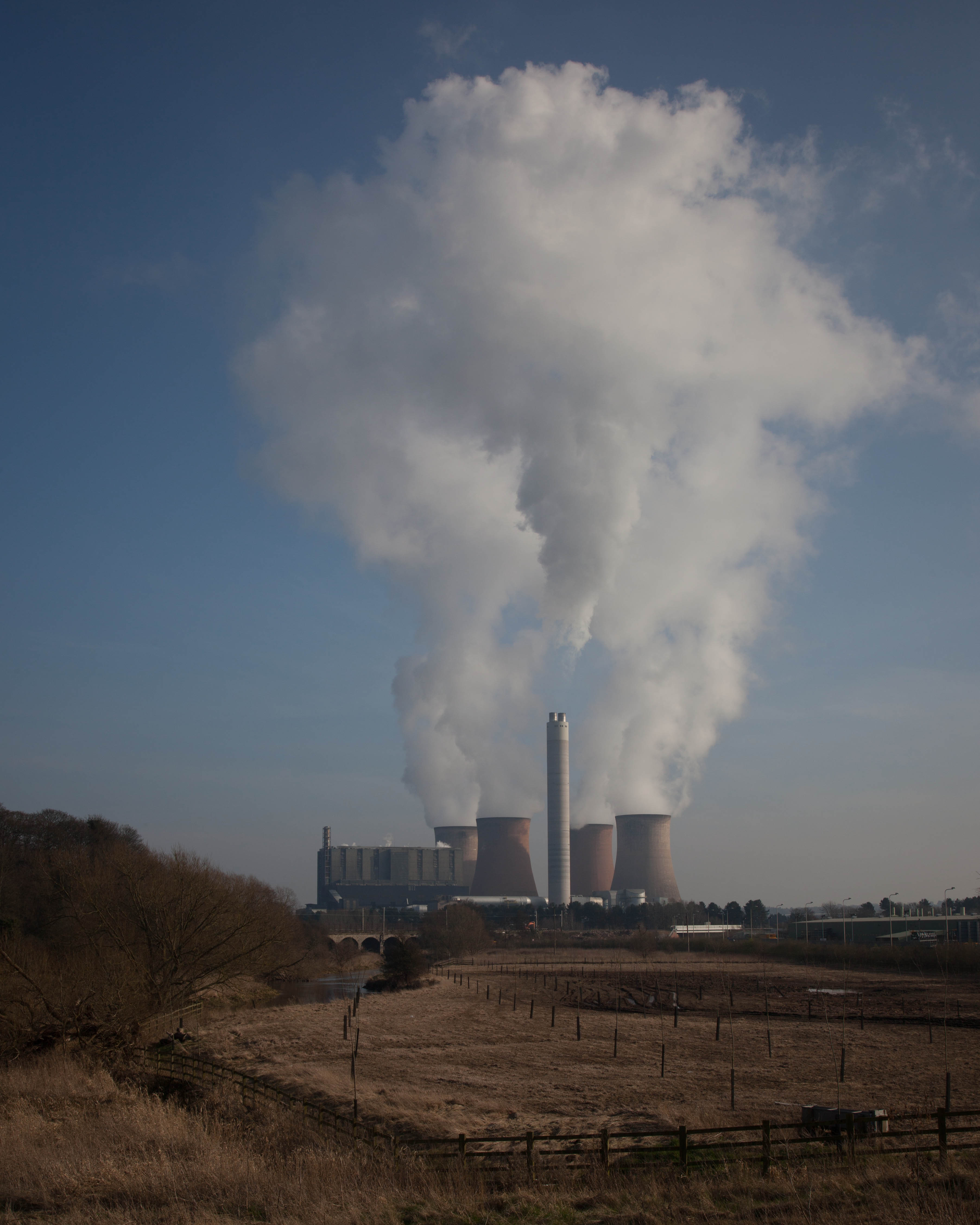 I have travelled past this power station many times in the last twenty years, thinking that in the right light it was strangely photogenic. This afternoon I finally found time to vista with the camera. It had been a grey, foggy morning but as I got there the sky turned blue and with the station obviously in full production there was a great plume of smoke and steam. The station itself almost looks like the basket of a hot air balloon, suspended from the steam above it.