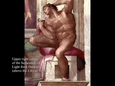 A male nude by Michelangelo from the Sistine Chapel. Note how in his search for perfection of the human form he has created something which works artistically but would be a gross distortion of the human form if it were to come to life.